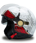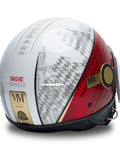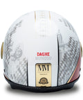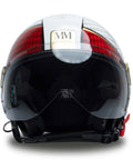 Der Jet MM Independent Helm wird in einer prächtigen weißen Version mit roten, goldenen und schwarzen Details erneuert, mit exklusiven Chrometech -Gold -Oberflächen verziert und durch die charakteristischen Details angereichert, die die Helme der MM -Linie unterscheiden.