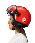 Le Casque Jet A-Ventura Rouge est pour qui conduit avec le cœur. Rouge racing qui représente la passion motocycliste italienne, fabrication 100% italienne garantissant qualité sans compromis. Racing, passionné, italien : un investissement en émotion et protection.