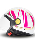 Casco jet bianco fuxia oro: eleganza luminosa, dettagli premium, uso quotidiano