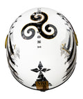 Ogni esemplare è realizzato a mano dai nostri maestri artigiani, con la massima cura e dedizione, per offrire un prodotto unico e di qualità superiore, che unisce tradizione e innovazione in un design senza tempo. Questa Edizione Speciale celebra l'identità visiva della regione con linee eleganti che evocano la bandiera bretone: un tributo allo spirito libero, che rappresenta un nuovo capitolo della serie "Libertà in Testa". Un casco pensato per chi ama distinguersi e riconoscersi.