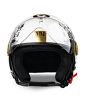 Il casco jet Bretagna nasce come un omaggio allo spirito libero: una base bianca pulita, dettagli grigi e neri che richiamano l'eleganza della bandiera bretone e finiture oro che accendono il design senza appesantirlo. Un equilibrio perfetto tra stile e carattere, con tutti gli elementi iconici che distinguono la linea MM.